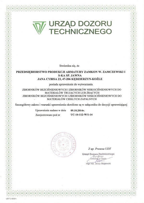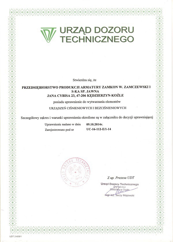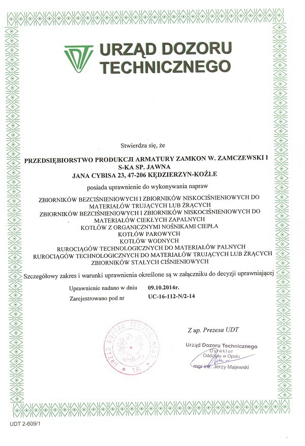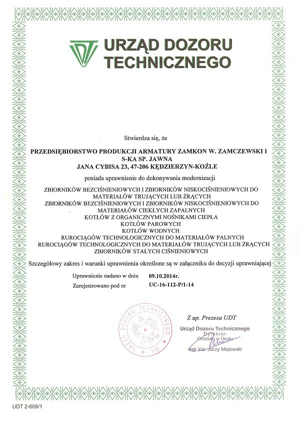 Uprawnienia UDT na wytwarzanie elementów urządzeń ciśnieniowych
