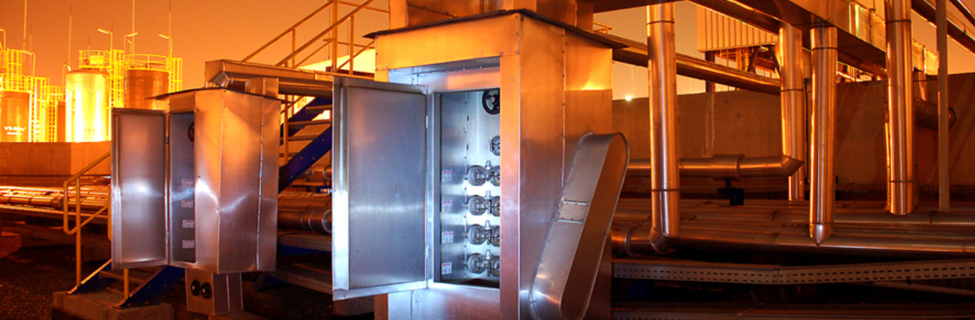 kompleksowe układy instalacyjne: stacje rozdziału pary i zbioru kondensatu, przepompownie kondensatu, stacje redukcyjne, stacje redukcyjno-schładzające.